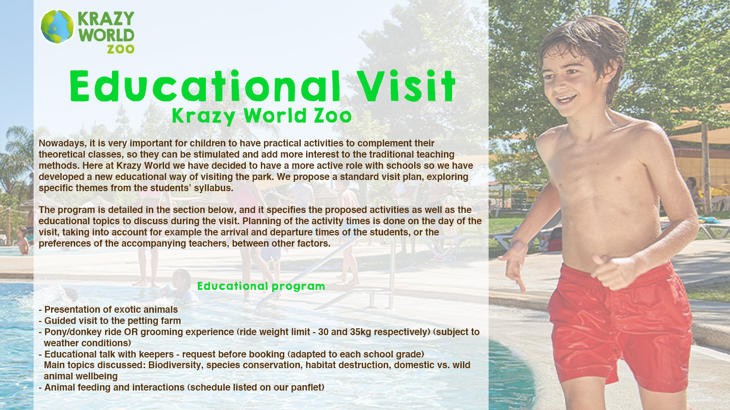 Professores e auxiliares têm uma entrada grátis por cada grupo de 10 crianças.